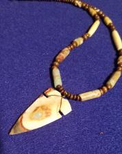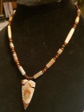 A beautiful point made from polychrome.  The larger beads are jasper and buffalo bone. The edges have purposely been dulled.  Thanks for viewing                       |