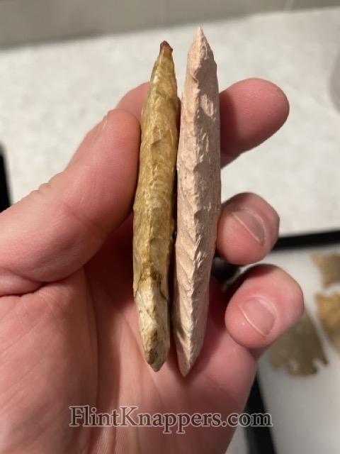 2 clipped wing dovetail points. Both made using two different varieties of Burlington.