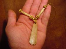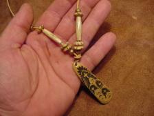 Offered here is a very unique "4" cross necklace carved from 10,000 year old mammoth tusk ivory, we all know what the 3 cross symblozes but who is the 4 one for? your personal conviction. I drilled a small hole and included a brown leather cord, brass and bone beads, Signed bonecarver and numbered and a stones N bones original...3.50 ship |