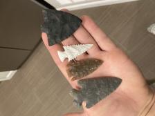 4 points made by unknown knappers longest point is 3 inches long materials include novaculite,hornstone,rootbeer,and normanskill |