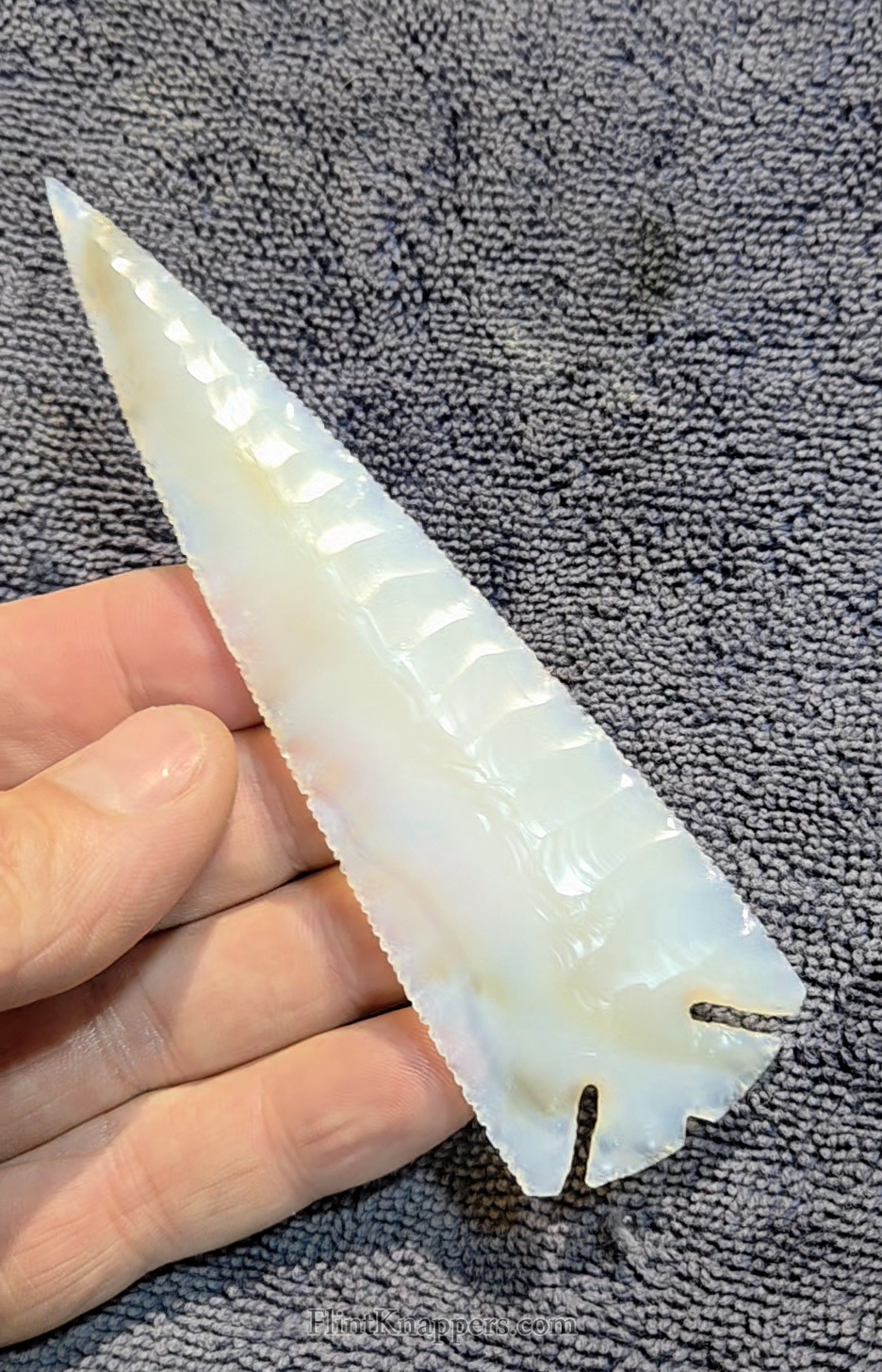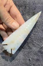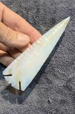 Here is a XL Elko point made from blackskin agate from India. Its beautifully flaked and displays deep notches and serrated edges. Thanks for viewing |