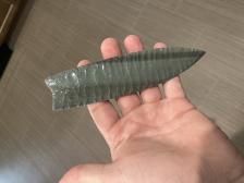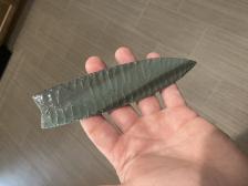 6 3/8 burns green obsidian paleo point made by Doug Shelton