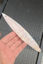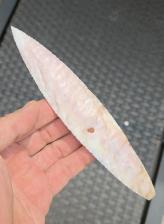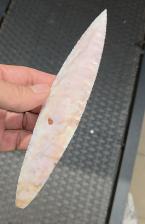Here is a pink paleo point/dagger made from polka-dot agate. The camera really took the pink tones out in the picture but it has a lot of pink hues in it in person. Thanks for viewing |