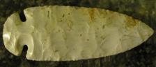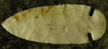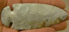 This is a nice dovetail made of grey flint ridge. This point has a really nice backbone on both sides! It is really well chipped and has quartz and iron deposits in it that make it look pretty authentic.