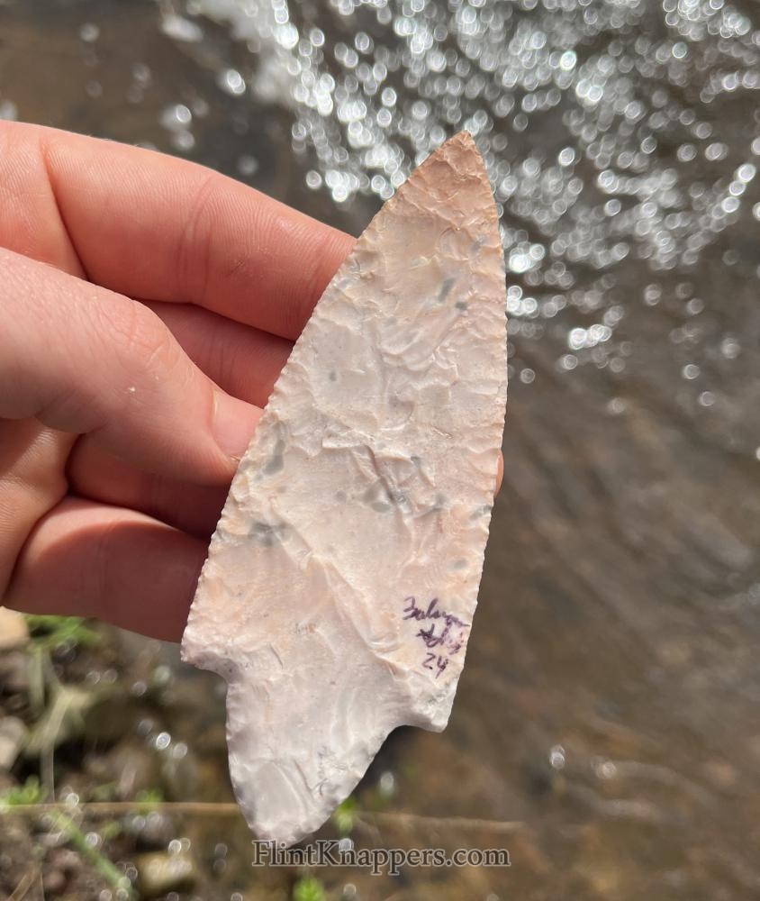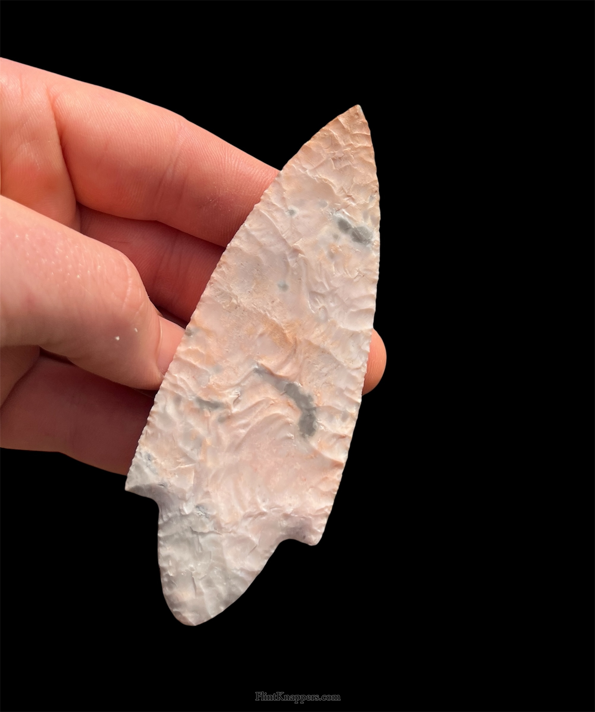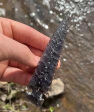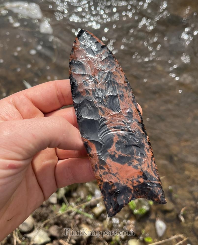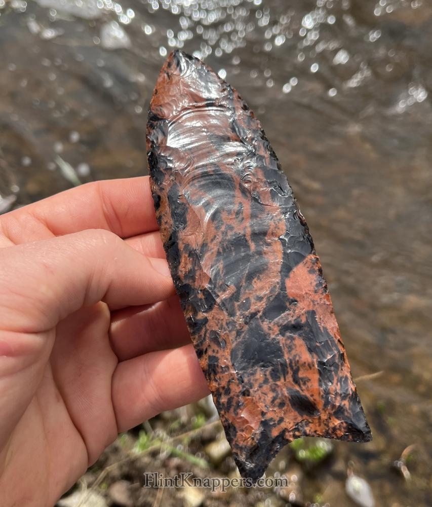 Side notch point from Davis creek rainbow obsidian, knapped with abo tools |