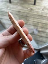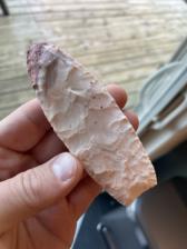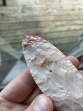 A really high grade, slick piece of Burlington chert. This Lance has some unique banding towards the top (including a crystal seam).