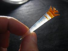 Real pretty Columbia Plateau styled point knapped from beautiful piece of South American agate. Exceptional dark orange almost red bands.