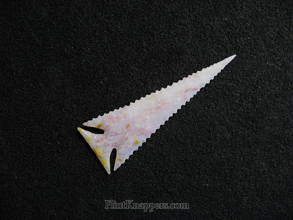A neatly styled corner notch made from light purple to light pink agate material from central Oregon. Nice notches and sharp! |