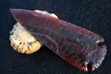 Another really nice piece of firey South American Agate. This point has so many dark layers of color, designs, and patterns, it is hard of actually focus on it. |