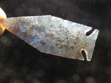 I had some requests to make some more of these so here's one if anybody wants it. This eastern style pentagonal point is made from a piece of clear and speckled (freckles!) Montana agate. These are sort of different. They must of been robust atlatl points! |