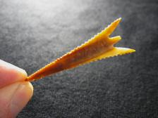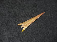 Slender knapped Gunther variety point made from agatized wood material from Oregon. Nice banding with some red/brown color in the tip. Thin and sharp! |