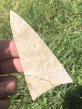 This Agave Blade is made from a fantastic piece of West Texas Chert. Colors are cream white and brown with a few red lines. A neat healed fracture that separates the cream and brown colors on one face.