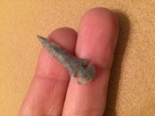 Another perfectly made Bob Thomas Agee. Bob is a master flint knapper and the best for this type. This is a beautiful Kidd Site type Agee, made from translucent black and white Novaculite, from Arkansas. There were only about 1100 authentic Agees found. Knapped May, 2000. Inv # 0005-75R |