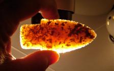 Alberta point out of highly translucent Knife River Chalcedony.....one of the materials most often used to make this point in prehistory. |