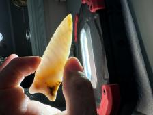 Made from beautiful semi translucent polkadot agate! Serrated sharp with nice oblique flaking! Thanks for looking!