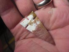 This is a great little point with some amazing color. The point is 1 7/8 long and 7/8 wide at the base. Im not sure what type of stone this is made from. Any info on what type it might be would be great, i would like to get some more. Im very firm on the price with this point. |