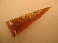 This is an Ishi point made out of a piece of amber glass I scrounged out of an old ranch dump. Ishi made Wintu points like this after he came out of the wilds in 1911 and demonstrated flaking points for visitors at the museum in San Francisco on Sunday afternoons until his passing in 1916. This piece of glass near my work area kept bugging me to finish it.... so I did. |