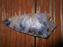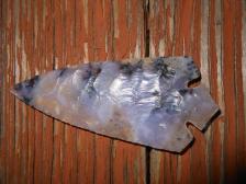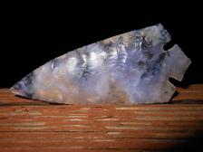 This point is made from amethyst sage agate. It is translucent when back lit . Purple,orange ,and cream with dendrites. |