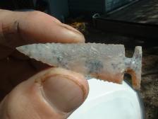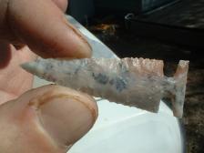 Hi,nice,interesting pt.,kinda grainy rock,but knapped out fine,touch of orange,and a few dendrites,thin,good pt.,thanx kindly for stopping by ! |