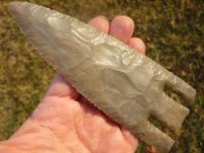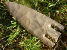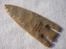A nice, large Andice by well known, senior flint knapper, Jim Redfearn. This tan Andice was knapped from Texas Tortilla, from San Antonio. Knapped Mar 2002, at the Texas Maxdale Knap-In. Signed: Jim REDFEARN 3-16-02 |