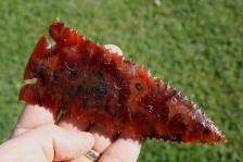 This is one of the most outstanding pieces of stone you will ever find. It appears to be on fire inside the point. The flames move as the light changes. It is an extremely beautiful spear point. It is a large spear point which makes it even rarer to find. This is a collectors dream point. |