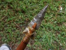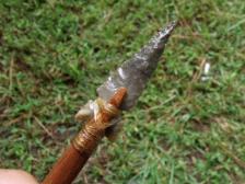 Cahokia point, Texas Flint hafted into a stained oak shaft with whitetail sinew and animal hide glue |