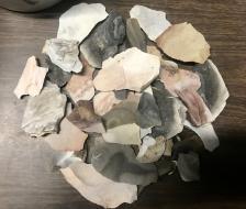 Assorted flakes for marking small to medium size birdpoints and arrowheads. Variety of material including Burlington, Cobden, Jeff City , Buffalo River, Dover, Texas Chert and more. |