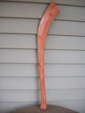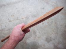 Atassa, the iconic warclub of the southeastern woodland tribes. Although they come in many shapes and forms, this seems to be the most common and with good reason. It just feels right in the hand and the striking edge would be absolutely lethal! Like a flattened, curved, edged baseball bat! 30'' long in solid ironbark. |