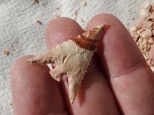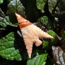 A beautiful pastel pink washes over this Australian Common Opal, with red bands streaking diagonally across the tip. It is a tricky material to knap and is difficult to come by, but is well worth it. I love the waxy appearance that common opal like this one shows once flaked.