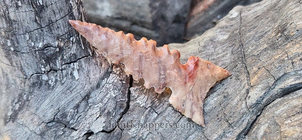 Fossil Palm Wood Serrated Side Notched Arrowhead |
