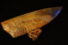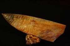 This is a mystery piece of agatized jasper. The colors are unbelievable. Golds, pinks, greens, blue, reds, and lavender. This is a beautiful blade with detailed edging. |