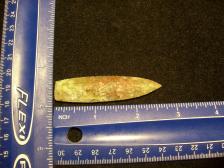 I Knapped this blade out of some Agate from India I think.This one gave me a little problem down on one bottom edge,i got several pictures of the blade from diferent angles.This one held up is one of the most awesome ones ive seen in a while.Thanks for your interest and have a good day. Will combine shipping. |