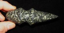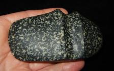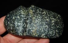 3/4 grooved axe made out of diorite from Northern Ontario, Canada. Nice green stripe running across the groove. |