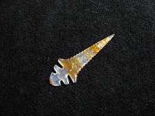 Double notch Agee point variant made from pretty orange banded agate. Fine little point. |