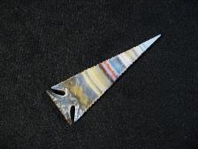 Beautiful banded corner notch point made from South American agate. Nicely flaked and notched! |