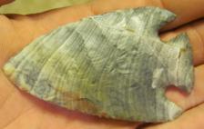 This is a nice peice of banded ridge. It is white, grey, pink and yellow. This point also has a nice lightning bolt running through it! |