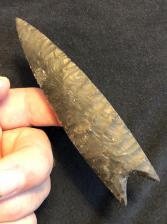 This Barber is made from a fantastic piece of James River Black. Color is black with a little gray. Hard rock to come by. Basal dulling. A fine example.