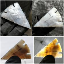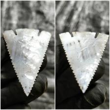 Bifaced with direct percussion using solid copper, indirect percussion to regularize and pressure to finish.