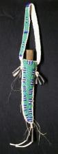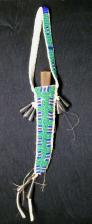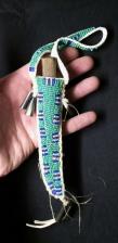 Brain tanned buckskin I tanned last summer sewn together with real sinew from the same deer. Lazy stitch (sewn just below the surface of the hide) is how I sewed the bead on, Green, translucent Cobalt Blue, Cranberry and Lt. Blue glass 10/0 seed beads are what I used and tin cones I made from an old Prince Albert tobacco can. The knife blade is stamped Eko Forge and is 6&1/2" in length. Also pictured is a strike-a-lite bag that matches the sheathe and I will post it on here later today after I take pictures. Bag includes old striker, tinder fungus, char clothe and flint. If interested in both before I post the bag please message me on here. $8.00 shipping. |