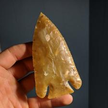 Made from a gorgeous butterscotch flavor of coastal plains chert. Excellent percussion flaking with smooth and clean faces on both sides
