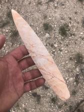 This Agate Basin is made from a fantastic piece of Keokuk. This was the last piece I had from Ron…. Colors are white and peach with darker red lines. Basal grinding.