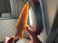 Made from beautiful semi translucent Coastal Plains chert from Brier Creek! Nicely flaked and serrated sharp, thanks for looking! |