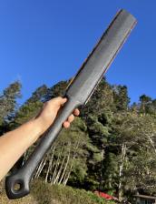 Macuahuitl I made from black stained oak and mahogany obsidian.the blades are fixed with pine tar. The wood is finished with obsidian scrapers.