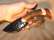 Knapped Dacite Paleo Knife Elk Antler with Walnut End Cap Handle |