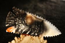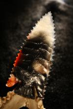 A beautiful piece of Piranha Agate with black, blue, and fire. This is a really nice serrated point. |