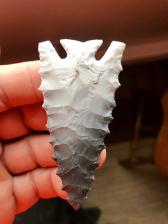 A stellar piece of B/W novaculite knapped into a wavy serrated pine tree |