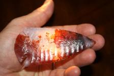 The photos don't do this piece of stone justice. This incredible piece of agate is one in a million. It was well worth the price that I paid for the opportunity to knap it and create such a point. |