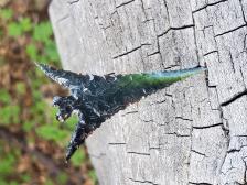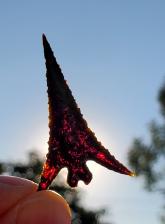 I love the colors on this one, with the deep blue black base and green to sky blue tip. When back-lit, the base color changes to a dark red translucency. This point, with its colors and detailed flaking, will be a great addition to your collection.