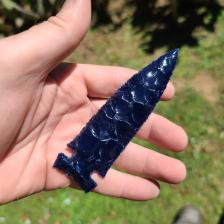 A nice flaked big sandy from a deep blue antique glass.