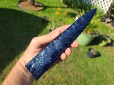 A nice flaked blue glass blade my niece made from antique Carrera glass